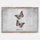 Añada un toque de color a su vivienda o habitaciones con una manta de empuje personalizada con una flor de mariposa rosa. El diseño de la manta presenta un par de mariposas vibrantes que descansan sobre una vina floral blanca sobre un fondo gris claro. Artículos de regalo adicionales disponibles con este diseño así como una variedad de colores.