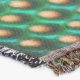 Estampado com imagem de fundo nas cores azul, verde, laranja e amarela que mudam progresivamente, tipo manchas. Outra imagem que compõe é de círculos que, diferentes tonalidades de la comunidad vertical causar una percepción de ter esferas sobre una imagen de fundo ou calombos surgindo da imagem de fundo. verde azulado,esferas,bolinhas,verde claro,verde escuro,verde esmeralda,colorido,cores chamales,azul,calombo,amarelado