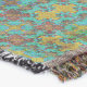 Los patrones vivos azules y amarillos se entrelazan en un diseño simétrico y caleidoscópico. Los detalles intrincados crean un efecto hipnotizante que recuerda a un tapiz o mosaico.