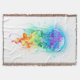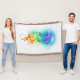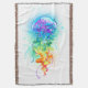 Grandes medusas de azulejo brillantes, de dibujos artísticos, con largos tentáculos en blanco, pintadas con fondo multicolor de acuarela. Mariscas arcoiris.