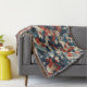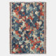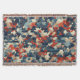 This is an abstract digital artwork featuring a dense, repeating geometric pattern composed primarily of interlocking hexagonal and cube-like shapes. The dominant colors are a mix of deep navy blue, vibrant coral or terracotta red, and shades of cream and pale blue, creating a dynamic, textured, and fragmented appearance. The style is reminiscent of cubism, a mosaic, or an intricate digital camouflage pattern. The overall effect is one of complexity and energy.