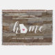 Muestra orgullo por tu estado natal con esta linda manta de lanzamiento de tablones de madera rústicos falsos que presenta "hogar" en letras de escritura de caligrafía blanca con un mapa en silueta del estado de Georgia en lugar de la letra "O". Una ilustración de corazón rosa dentro del mapa del estado completa el diseño; puedes cambiar la posición del corazón a tu ciudad natal abriendo la herramienta de diseño y arrastrando la forma del corazón a tu lugar favorito. Personaliza con tu ciudad natal, nombre de familia y año de establecimiento para crear un regalo de inauguración perfecto y memorable o un complemento para tu nuevo hogar.