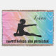 Gimnasia Arcoiris "Sin embargo ella persistió" - Impresionante silueta de gimnasta en el piso de gimnasia parece que está lista para actuar en un encuentro de gimnasia. Esto es sobre un fondo de estilo holograma arcoiris. En la esquina superior derecha se puede personalizar el nombre de la gimnasta. Al final dice la famosa cita de "sin embargo ella persistió". Como cualquier deporte, la gimnasia puede ser un desafío. Su gimnasta compite en línea no sólo contra otros compañeros de equipo y amigos, sino contra sus propias fortalezas y debilidades. Este diseño fue creado para mostrar su fortaleza y dar aliento.