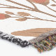 Das Bild zeigt ein anmutiges Muster aus stilisierten Blumen in warmen Orange- und Brauntönen, umgeben von grünen Blättern und zarten Zweigen. Die harmonische Wiederholung der Elemente strahlt eine ruhige Herbststimmung aus, die Wärme und Natürlichkeit vermittelt. Es erzeugt ein Gefühl von Geborgenheit und ästhetischem Gleichgewicht.