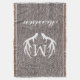 Silueta rústica de ciervos blancos de madera con textos personalizados sobre un patrón de herringbone marrón de campo.