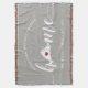Muestra orgullo por tu ciudad natal con esta adorable manta gris rústica que presenta la palabra "hogar" en letras de caligrafía blanca, con un mapa en silueta de Martha's Vineyard sustituyendo la letra "O". Una ilustración de un corazón rojo dentro del mapa del estado completa el diseño; puedes cambiar la posición del corazón a tu ciudad natal abriendo la herramienta de diseño y arrastrando la forma del corazón a tu lugar favorito. Personaliza con tu ciudad natal, apellido de familia y año de fundación para crear un regalo de inauguración perfecto y memorable o un complemento para tu nuevo hogar.