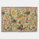 Patrón otoñal pintado a mano con varias hojas otoñales, bayas, bellotas, aves y setas