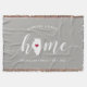 Muestra orgullo por tu estado natal con esta linda manta gris rústica que presenta "hogar" en letra de caligrafía blanca con un mapa en silueta del estado de Illinois reemplazando la letra "O". Una ilustración de corazón rosa dentro del mapa del estado completa el diseño; puedes cambiar la posición del corazón a tu ciudad natal abriendo la herramienta de diseño y arrastrando la forma del corazón a tu lugar favorito. Personaliza con tu ciudad natal, nombre de familia y año de fundación para crear un regalo de inauguración perfecto y memorable o un complemento para tu nuevo hogar.