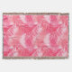 Empujar la manta con una huella de siluetas de hojas de palmera superpuestas, en tonos rosa y melocotón, contra un fondo rosa de concha pastel