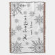 Crea un regalo de invierno maravilloso cuando personalizas el elegante copo de nieve de tono plateado en una manta blanca con los nombres de la novia y el novio y el año en que se casaron. Esta elegante manta de invierno personalizado presenta falsos copos metálicos de plata con fondo blanco.