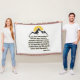 Esta manta de tiro tiene el verso biblial Isaiah 2:2 en una letra negrita con letras negras con sombra y citación amarillas y cima de montaña con sol amarillo en el fondo con este tema basado en la fe. Esta manta está hecha con 75% de algodón y 25% de poliéster con un toque muy suave de lavado de manos.