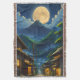 La luna brilla sobre un pequeño pueblo en Java, Indonesia, con una gran montaña al fondo.