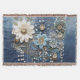 Gráficos de textura de Denim azul decorados con encaje y joyas de vestuario de color crema blanca