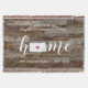 Muestra orgullo por tu estado natal con esta linda y rústica manta de lanzamiento de tablones de madera falsa que presenta la palabra "hogar" en letras de caligrafía blanca con un mapa en silueta del estado de Kansas sustituyendo la letra "O". Una ilustración de corazón rosa dentro del mapa del estado completa el diseño; puedes cambiar la posición del corazón a tu ciudad natal abriendo la herramienta de diseño y arrastrando la forma del corazón a tu lugar favorito. Personaliza con tu ciudad natal, nombre de familia y año de establecimiento para crear un regalo de inauguración perfecto y memorable o un complemento para tu nuevo hogar.