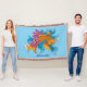 Pescado de Koi con flores de loto y flores de cerezo todo en agua azul