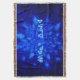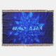 Un enjambre de copos de nieve fractales azules. El texto inuktitut que dice "Kuvianak Innovia" (ᑯ ᕕ ᐊ ᓇ+ᐃ ᓄ ~ - Feliz Navidad), en el alfabeto sílabo adoptado en Nunavut, también aparece en azul y blanco resplandeciente. A los inuit se les conoce comúnmente como esquimal, pero ese término ahora está desfavorecido pues se considera peyorativo.
