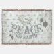 Hermosa apariencia vintage de vacaciones presenta estrellas azules en fondo blanco con texto gris que lee Paz en la Tierra, ornamentos azules y grises y una paloma blanca y gris en rama!