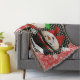 Snowman y Snow Lady Snowflakes lanzan una manta, tan bonito y colorida, con copos de nieve blancos sobre fondo rojo con un círculo negro con puntos blancos y un lado con un muñeco de nieve con sombrero negro top y corbata de arco rojo, el otro lado una dama de nieve con un gorra de invierno rojo y verde y una bufanda rayada.
