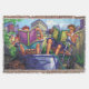 El Summertime Reading Art by Traci Van Wagoner presenta a un niño y a un chica sentados en un patio trasero urbano en un día de verano caliente con los pies en una bañera fresca, bebiendo limonada y leyendo libros. Un gato y un perro yacían rizados a sus pies en la cubierta de madera. Perfecto para los amantes del libro y bibliófilos de todas las edades.