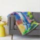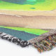 Throw in a watercolor style portrait of a lighthouse standing tall under a vibrant, star-filled night sky. Surrounded by lush green trees and soft grassy hills, its golden light glows warmly, creating an atmosphere that evokes wonder and tranquility.
