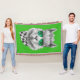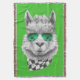 Características del este diseño un retrato de una llama con las gafas de sol y el neckershief blanco y negro.