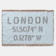 Coordenadas de latitud y longitud para Londres, Inglaterra con tipo de letra gris, estilo esténcil urbano