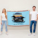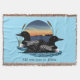 Dos lomos en el lago con una puesta de sol y detrás de ellos en un fondo azul