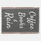 ¡Los amantes de los libros blancos y grises de la moda lanzan mantas y hacen de los Navidades una idea de regalo para cualquier amante de los libros, del café y de la lluvia! Dice 'Coffee Books & Rain' impreso en letras cursivas blancas frescas en un fondo de color grisáceo.