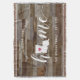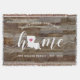 Muestra orgullo por tu estado natal con esta linda manta de lanzamiento de tablones de madera rústicos falsos que presenta "hogar" en letras de caligrafía blanca con un mapa en silueta del estado de Louisiana reemplazando la letra "O". Una ilustración de corazón rosa dentro del mapa del estado completa el diseño; puedes cambiar la posición del corazón a tu ciudad natal abriendo la herramienta de diseño y arrastrando la forma del corazón a tu lugar favorito. Personaliza con tu ciudad natal, nombre de familia y año de establecimiento para crear un regalo de inauguración perfecto y memorable o un complemento para tu nuevo hogar.