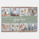 Give Grandma a gift she'll cherish. This photo collage blanket features eight of her favorite square photos of the grandkids, along with the message "Love You Grandma." The word "grandma" appears in elegant white handwriting script with flourishes at the beginning and end on a sage green background. Add the names of up to four grandchildren. An ideal gift for holidays, birthdays or grandparents' day.