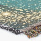 Soft flowing waves of teal and deep purple blend together with shimmering gold sparkles. A stylish abstract pattern with a modern and luxurious feel.