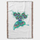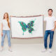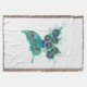 Mariposa pintada de forma artística, ficticia, verde, detallada, con plumas verdes, hermosas, de pavo real sobre fondo blanco.