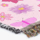 Esta fabulosa manta de tiro muestra una imagen de arte digital de un grupo de flores y mariposas, cada una con un tono rosado para representar a una niña. Las flores incluyen Dahlias, lirios de agua, no me olviden ni crisantemos.
