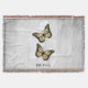 Añada un toque de color a su vivienda o habitaciones con una funda de hilado de mariposa dorada personalizada. El diseño de la manta presenta un par de mariposas vibrantes que descansan sobre una vina floral blanca sobre un fondo gris claro. Artículos de regalo adicionales disponibles con este diseño así como una variedad de colores.