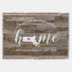 Muestra orgullo por tu estado natal con esta linda y rústica manta de lanzamiento de tablones de madera falsa que presenta "hogar" en letras de caligrafía blanca con un mapa en silueta del estado de Massachusetts sustituyendo la letra "O". Una ilustración de un corazón rosa dentro del mapa del estado completa el diseño; puedes cambiar la posición del corazón a tu ciudad natal abriendo la herramienta de diseño y arrastrando la forma del corazón a tu lugar favorito. Personaliza con tu ciudad natal, nombre de familia y año de establecimiento para crear un regalo de inauguración perfecto y memorable o un complemento para tu nuevo hogar.