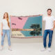 Diseño original de mediados de siglo inspirado en los diseñadores de la República de Vintage que presenta un edificio rosa polvoriento y un alto árbol californiano de palmeras