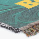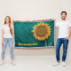 Un girasol vibrante con una cara pétalo amarillo brillante y un centro marrón circular. El girasol se coloca en el lado derecho de la imagen. Alrededor del girasol hay un diseño detallado y ornamentado con un fondo turquesa. Este diseño se compone de torbellinos y patrones intrincados que se asemejan a los motivos florales. El tallo y las hojas del girasol también se representan en un tono turquesa similar, lo que contrasta armoniosamente con los pétalos amarillos.