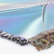 Un diseño geométrico metálico azul, naranja, dorado y morado perfecto para una manta.