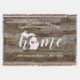 Muestra orgullo por tu estado natal con esta linda y rústica manta de lanzamiento de tablones de madera falsa que presenta la palabra "hogar" en letras de caligrafía blanca, con un mapa en silueta del estado de Michigan reemplazando la letra "O". Una ilustración de corazón rosa dentro del mapa del estado completa el diseño; puedes cambiar la posición del corazón a tu ciudad natal abriendo la herramienta de diseño y arrastrando la forma del corazón a tu lugar favorito. Personaliza con tu ciudad natal, nombre de familia y año de establecimiento para crear un regalo de inauguración perfecto y memorable o un complemento para tu nuevo hogar.