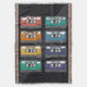 Para el amante de la música. La generación X vuelve al día con esta manta de lanzamiento de mixtape. Las cintas están diseñadas en varios colores con títulos divertidos que revelan el estado de ánimo que emite la música mixtape cuando se reproduce. El fondo cuenta con líneas inclinadas al estilo de los años 80. Dale este regalo retro y genial a un hipster, GenXer, o Xennial (mamá o papá).