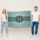 Modelo rayado azul verde azulado masculino y elegante con diseño del marco de la bandera en el centro para su inicial personalizada del monograma.