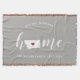 Muestra orgullo por tu estado natal con esta linda manta gris rústica que presenta "hogar" en letra de caligrafía blanca con un mapa en silueta del estado de Montana reemplazando la letra "O". Una ilustración de un corazón rojo dentro del mapa del estado completa el diseño; puedes cambiar la posición del corazón a tu ciudad natal abriendo la herramienta de diseño y arrastrando la forma del corazón a tu lugar favorito. Personaliza con tu ciudad natal, nombre de familia y año de fundación para crear un regalo de inauguración perfecto y memorable o un complemento para tu nuevo hogar.