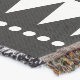 Diseño original de patrones con filas de picos triangulares con líneas punteadas que quizás parecen rangos estilizados de montañas. Inspirado por patrones tribales aztecas.