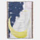 Digital artwork of a crescent moon nestled in soft clouds, with stars twinkling in the background.