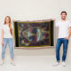 This oil painting from Amanda Diehl features a Venetian jester mask brandishing an enigmatic smile. The mask, adorned with glazed black and candy-apple red diamonds surrounded by gold scrollwork, floats on a field of burgundy damask.