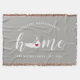 Muestra orgullo por tu ciudad natal con esta adorable manta gris rústica que presenta "hogar" en letra de caligrafía blanca con un mapa en silueta de Nantucket en lugar de la letra "O". Una ilustración de un corazón rojo dentro del mapa del estado completa el diseño; puedes cambiar la posición del corazón a tu ciudad natal abriendo la herramienta de diseño y arrastrando la forma del corazón a tu lugar favorito. Personaliza con tu ciudad natal, apellido y año de fundación para crear un regalo de inauguración perfecto y memorable o un complemento para tu nuevo hogar.