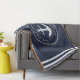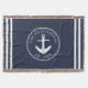 Esta manta de lanzamiento náutica con un ancla y rayas de color azul marino y blanco es una plantilla con un nombre familiar y el año para que sea fácil de personalizar.