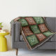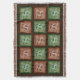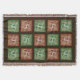 Como si perteneciera a una novela victoriana de Dicken, esta acogedora manta de tiros trenzados presenta una pintura digital original que emula la apariencia de un delicado panel de Chantilly Lace que representa un elegante dólar, flores y una cruz cristiana puesta sobre cuadrados verdes o rojos en un tablero de ajedrez con tiras oscuras en el medio.
