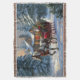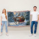 Santa conduciendo un trineo de un caballo para entregar regalos de Navidad en un pequeño pueblo