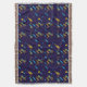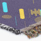 Navy blue woven blanket with a colorful pattern of pencils and rulers in yellow, blue, and red. Displayed in horizontal and vertical orientations.